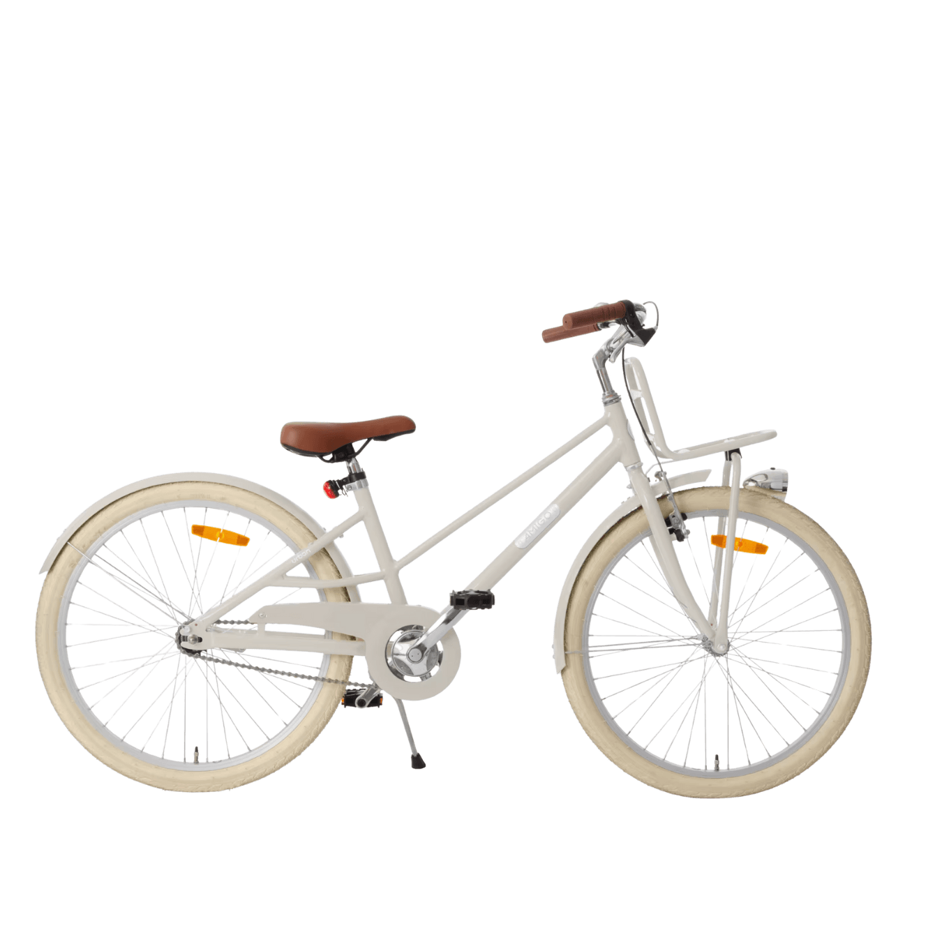 Een moderne, lichtgewicht aluminium transportfiets met vintage look. Voor meiden is dit een perfecte fiets voor afstanden, maar ook voor shoppen, want er kan een kistje op, zodat je niks op je rug hoeft te dragen. Verkrijgbaar in 3 kleuren: Wit, roze en groen.